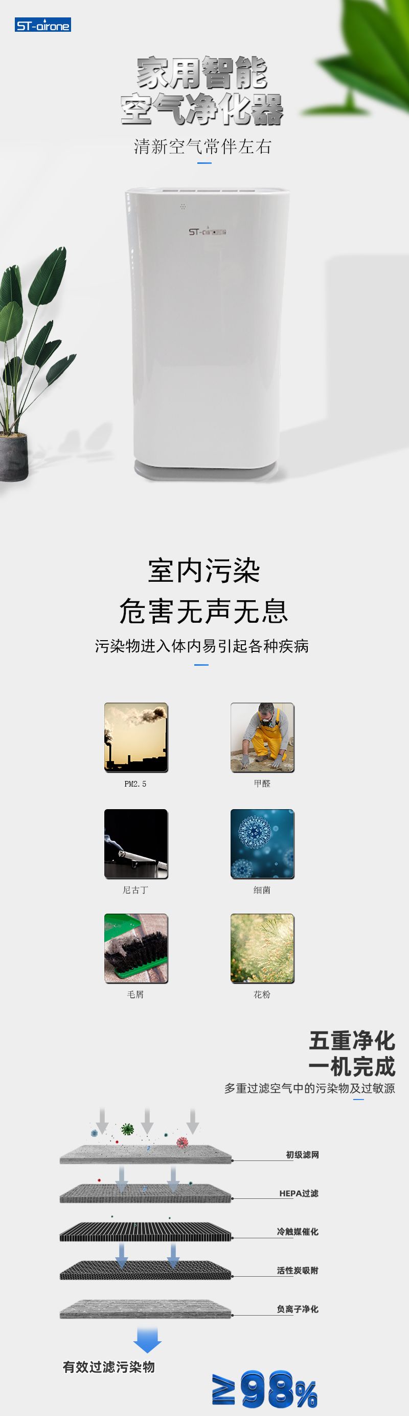 好处4:负离子、光触媒、活性炭、HEPA滤网等多层过滤PM2.5、甲醛、杀菌净化,杜绝二次污染
